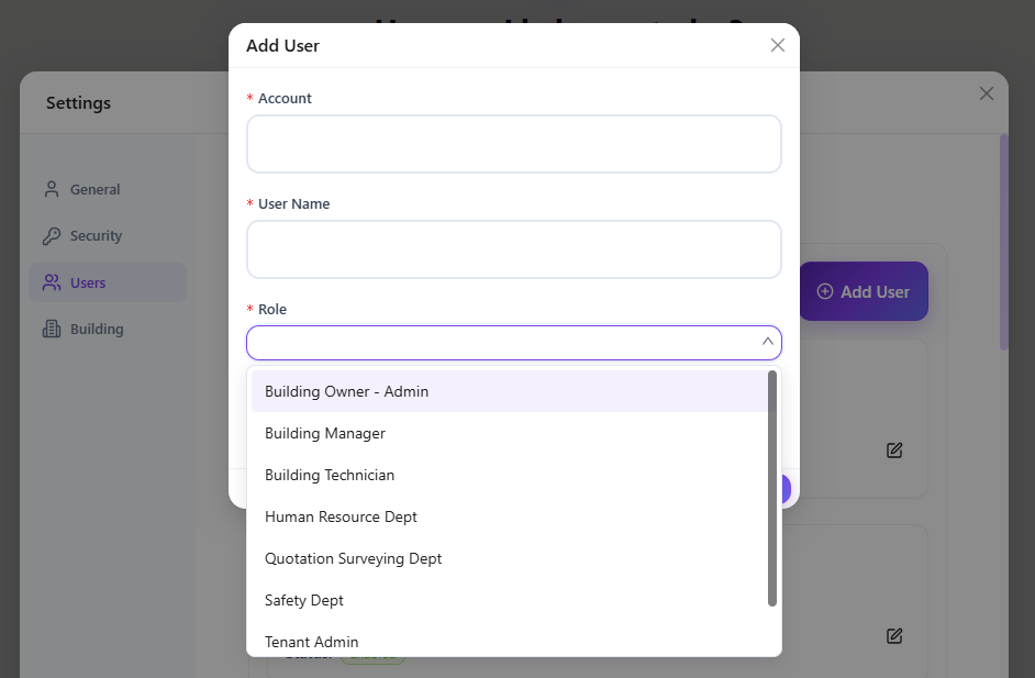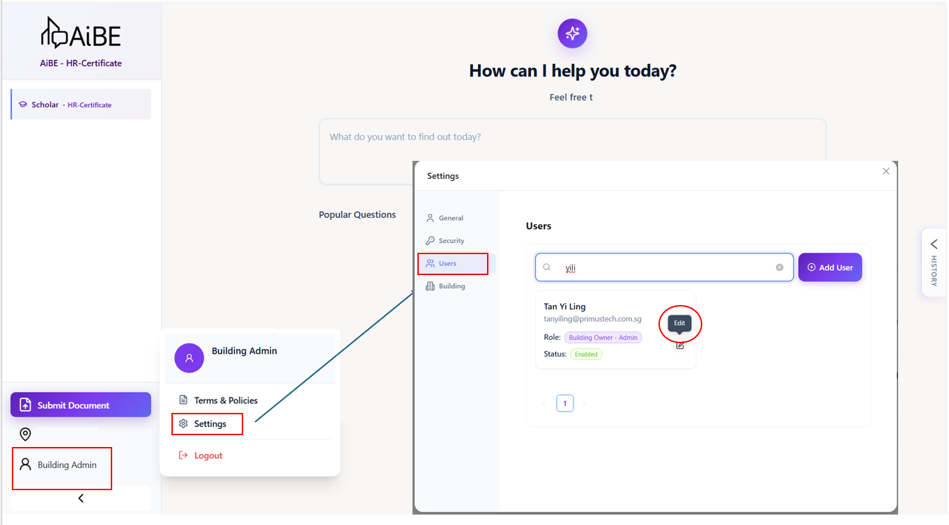 4. Editing User Permission / Adding User (For Administration Role Only)