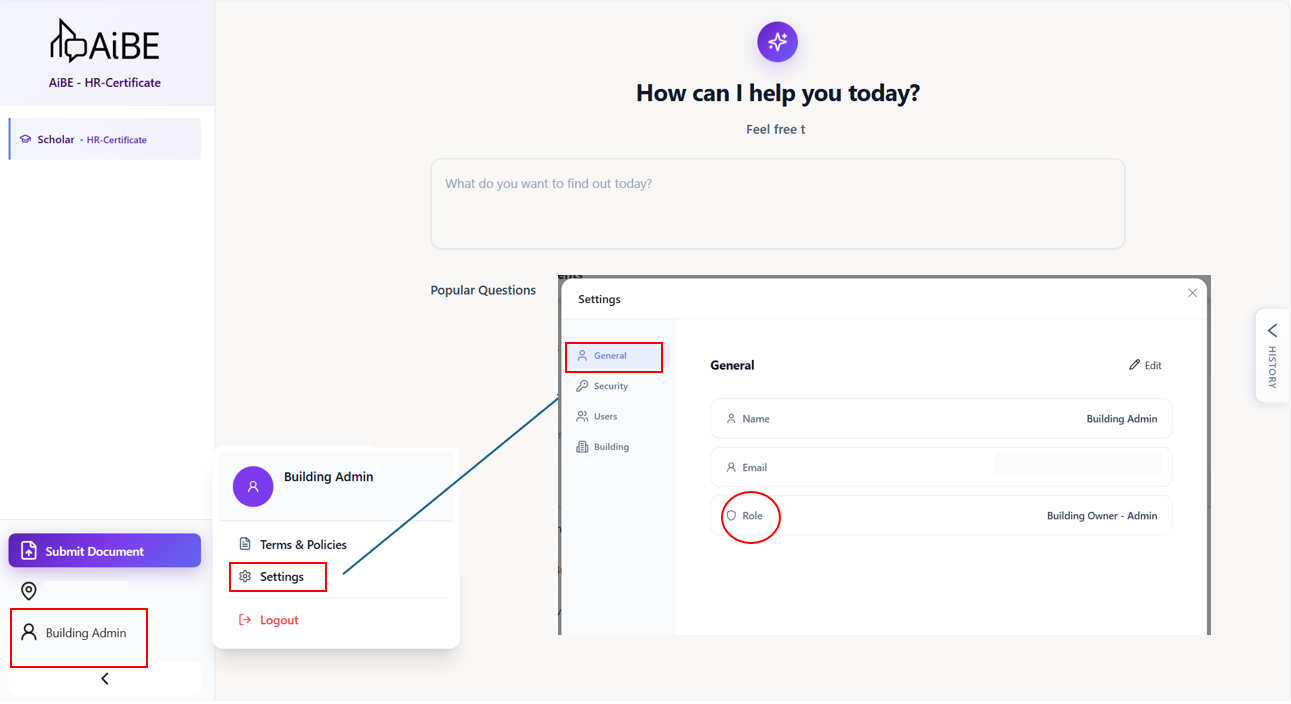 If you would like to request for a new role, please contact your building admin/department admin for AiBE
